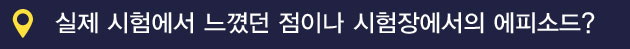 실제 시험장은 오히려 긴장감이 크게 들지 않았습니다. 시험장은 간식이나 물 (라벨 없이) 들고 가는 것이 가능하고 여름에는 안이 추운 경우가 종종 있으니 가디건 하나 챙겨 가시면 좋습니다. 또한 화장실도 한칸이어서 되도록이면 미리 화장실을 가는 것을 추천합니다.